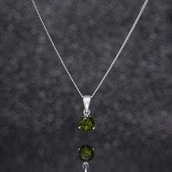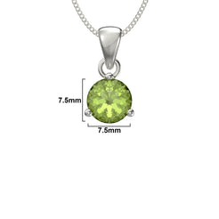 Peridot Cubic Zirconia silver pendant necklace. Featuring the birthstone for August, set in 925 sterling silver.