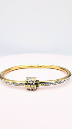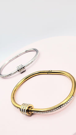 Curved Crystal Stacking Bangle Stainless Steel