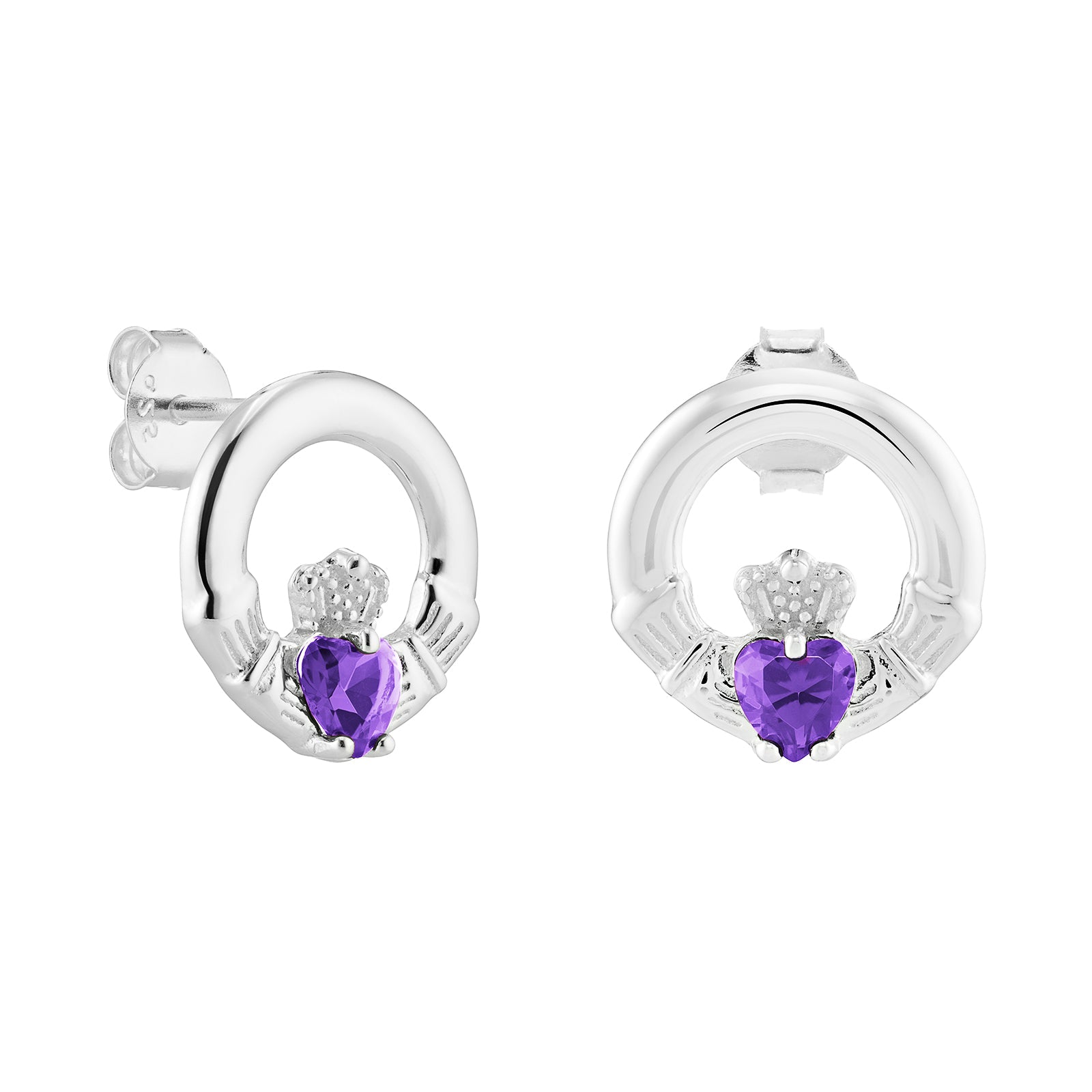 February Birthstone Claddagh Earrings