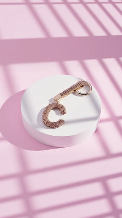 Personalised Crystal Initial Letter Key Ring & Bag Charm - Rose Gold