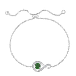 Stunning May birthstone & 925 sterling silver infinity bolo bracelet adorned with the May birthstone, emerald cub...