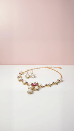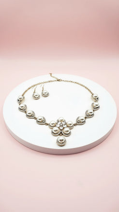 Pearl Crystal Flower Necklace & Earrings Set