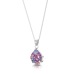 Sterling Silver Purple Haze Medium Teardrop Pendant Handmade with Real Flowers