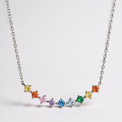 Celebrate colour and confidence with our elegant Rainbow Bar Necklace, handcrafted in premium 925 sterling silver and set with a vibrant row of multi coloured cubic zirconia stones. The horizontal bar design offers a sleek, modern look that adds just the right amount of sparkle to any outfit.