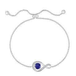 Our September birthstone infinity bolo bracelet, made with 925 sterling silver and adorned with a saphire cubic zirco...