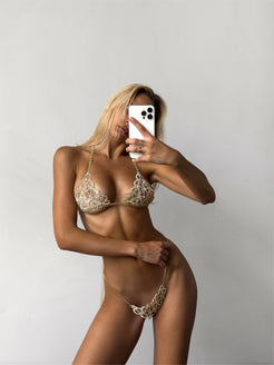Elegant and alluring gold rhinestone crystal lingerie set for a night to remember. This exquisite piece has both the ...
