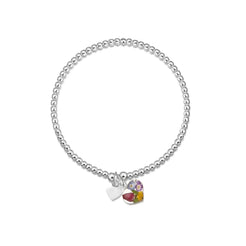 Our sterling silver beaded bracelet on an elasticated thread with a real flower hanging charm and a sterling silver heart.