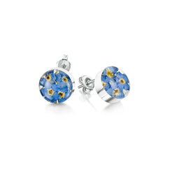 Stud Earrings with Real Forget-Me-Nots Sterling Silver