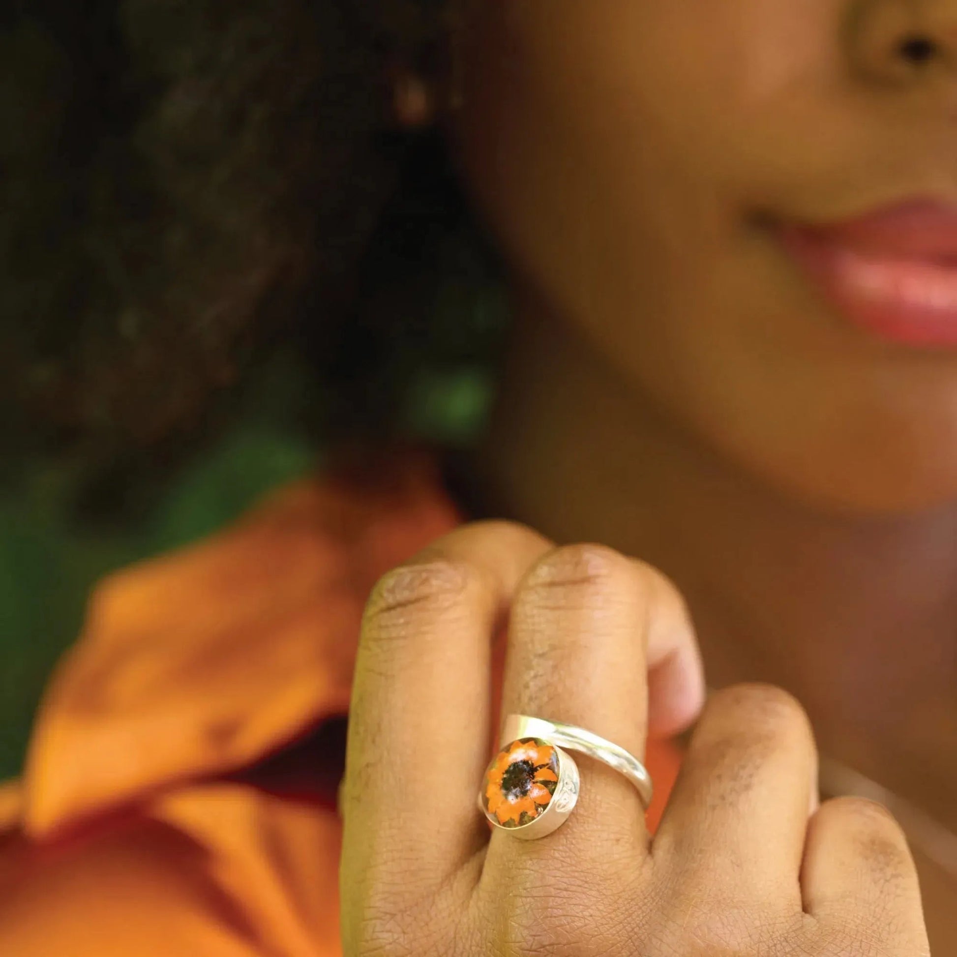 Sunflower Jewellery by Shrieking Violet® Sterling Silver Adjustable Ring with a Real Flower. Ideal Gift for a Special...